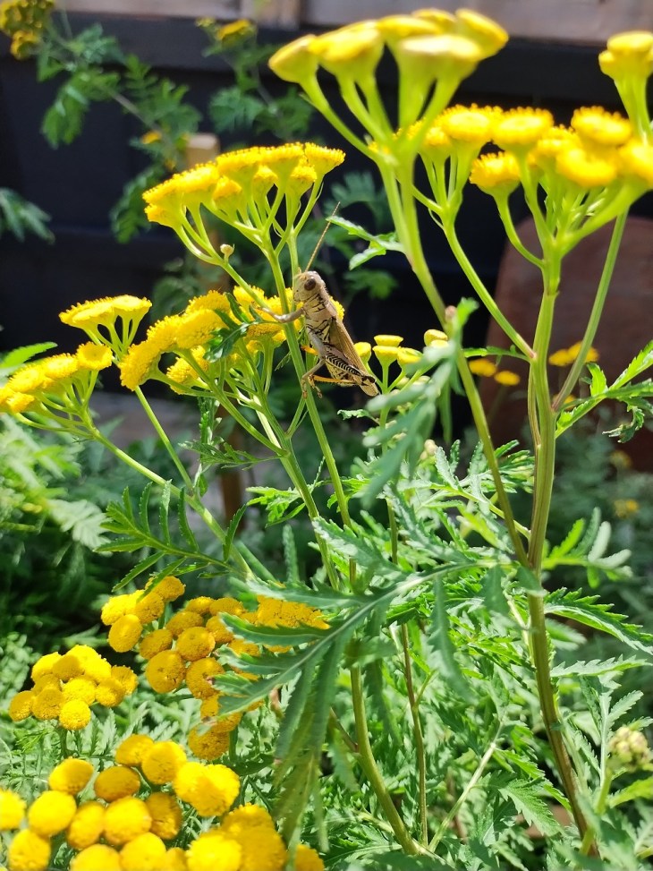 patience, grasshopper September 3, 2024August 27, 2025 Posted in mental health There’s always a few grasshoppers sitting on the tansy. This one’s name is “Biggie”.