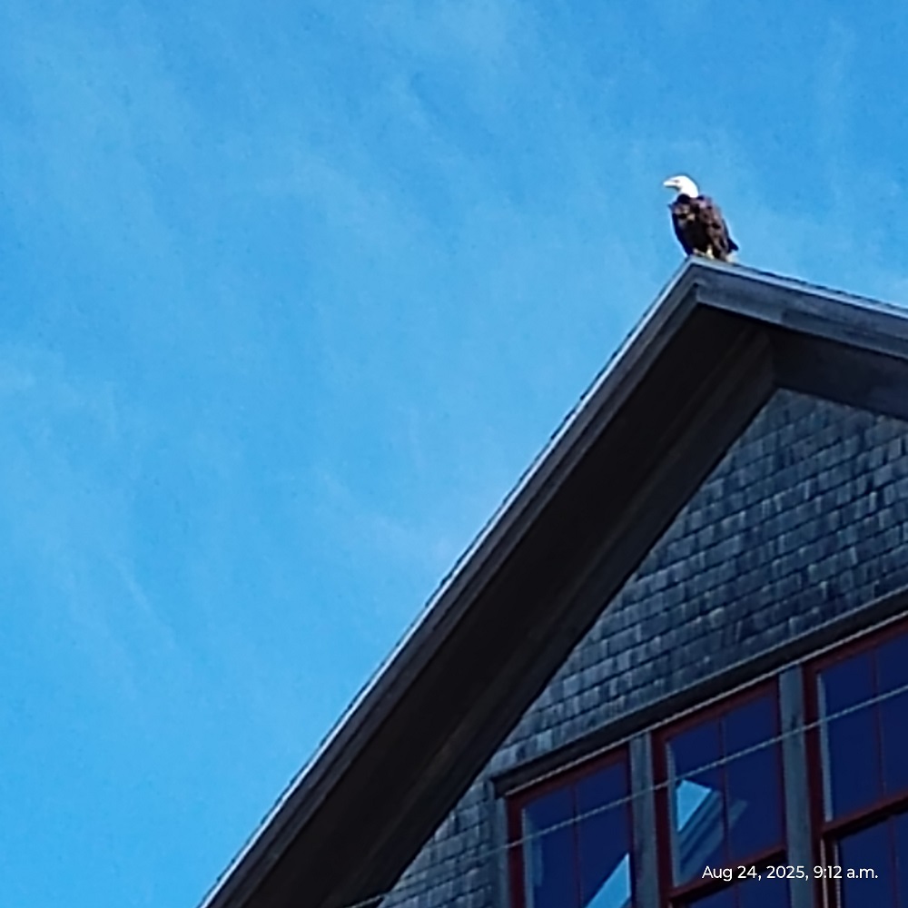 About to start cooking the flowers Sunday morning, an eagle appeared on the peak of the Opera House roof.