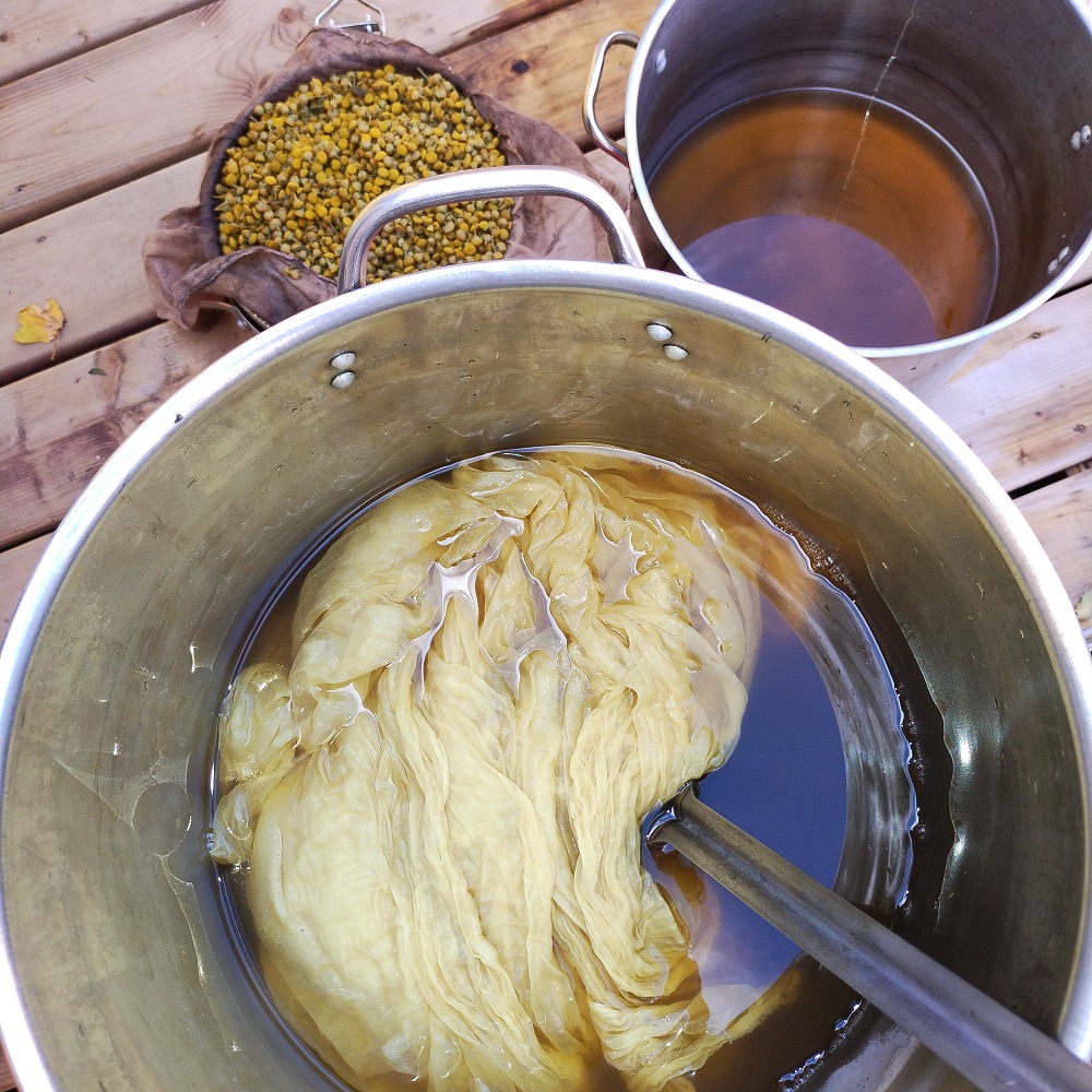 The flowers gave a nice clear yellow on mordanted organic cotton.