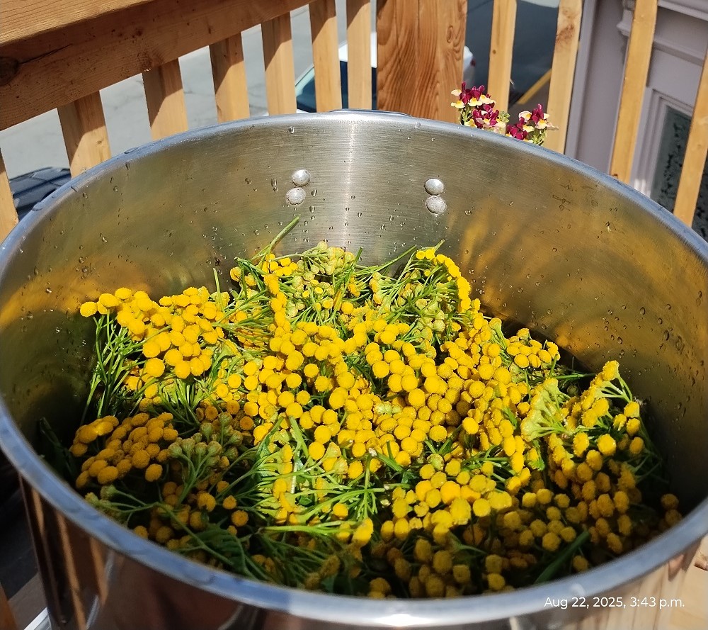 Preparing to dye with fresh tansy at The Bailly House in Lunenburg, Nova Scotia.